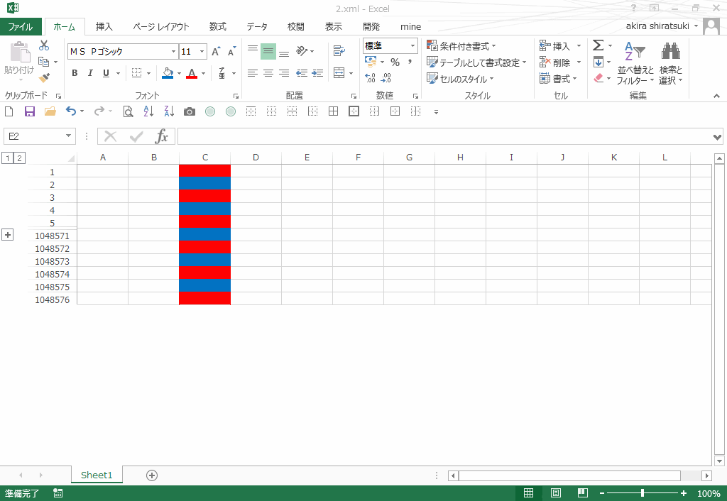 (2)CellStyleを赤・青まばらにする(セル選択後に色変更)