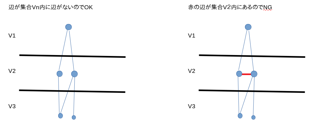 問題としては、同じVnに辺があってはいけないというもの。 幅優先探索法で、既に探索済みのノードに出会った場合、次のレベルか前のレベルかしかないということに気づけば後はもっとも長いパスを見つければOK うーん、時間中には思いつかん。。。 PR |