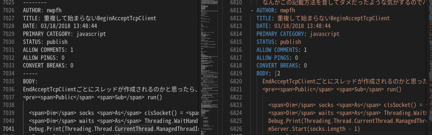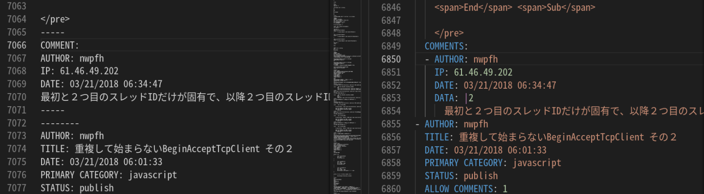 MovableTypeフォーマット このフォーマットsedで置換できますか? ソース いい感じにyamlになって使い勝手が良いかも? Qiitaはエクスポート標準で対応してないし、インポートもできないのか。。。 引越し辞めるかw PR |